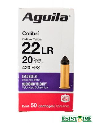 Munitions Aguila colibri Cal 22lr Cat. C8 projectile 20 grains faible charge