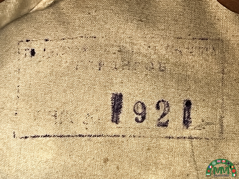 Les casquettes M1910/15 sont fabriquées dans différents ateliers d’intendance ce que confirme le tampon intérieur, bien que celui-ci soit partiellement effacé.