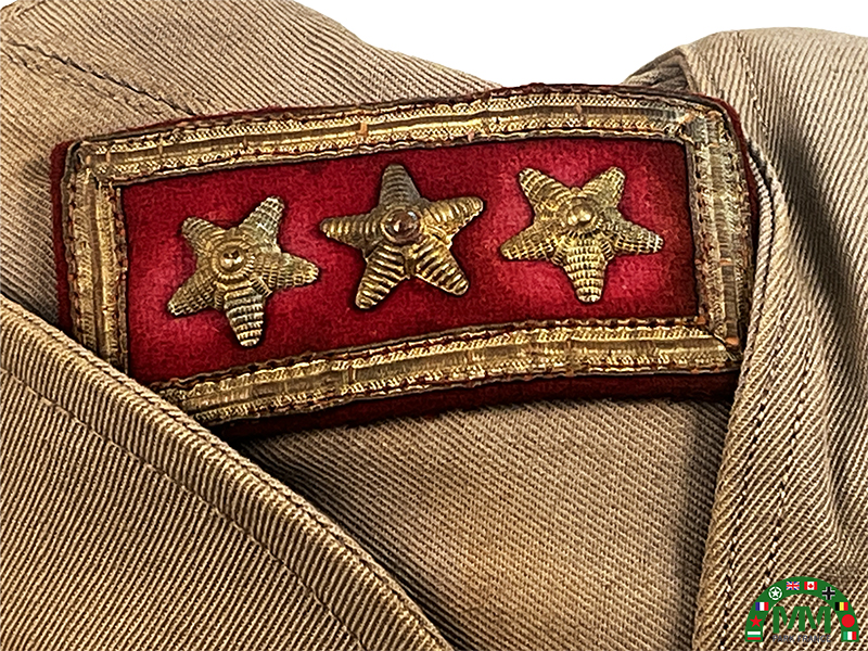 Grade = trois étoiles dorées brodées dans un cadre → Colonnello (Colonel)