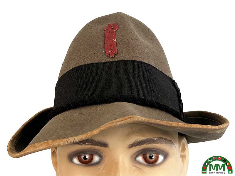 Chapeau alpin ressemblant à celui des Alpini, mais avec bande noire.