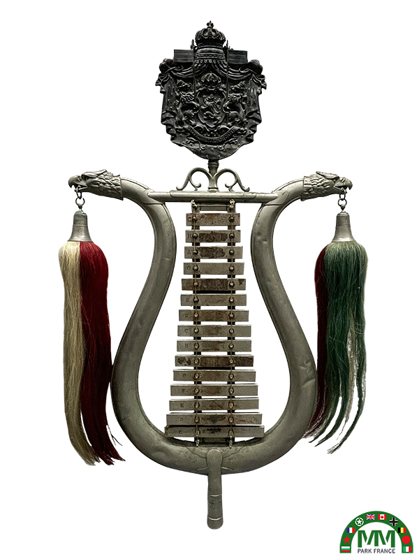 Instrument utilisé dans les musiques militaires pour les défilés, les cérémonies officielles, les prises d’armes, les manifestations royales ou d’État. Le Lyra-Glockenspiel est porté et joué à l’aide de baguettes, produisant un son clair de carillon.