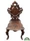 Cet ensemble de mobilier se compose d’un guéridon ovale sculpté et de deux chaises assorties, richement ornés de décors végétaux et d’un monogramme princier couronné central. L’ensemble est entièrement réalisé en bois finement sculpté, avec un plateau de guéridon décoré de motifs gravés et incrustés évoquant l’écorce, les feuilles et les arabesques florales, dans un style historiciste très raffiné, caractéristique de la seconde moitié du XIX siècle. Le monogramme principal est composé des lettres A I entremêlées, sous une couronne princière, symbolisant Alexandre Ier de Battenberg, premier prince de Bulgarie (règne 1879–1886). Ce chiffre princier, gravé en position centrale sur le plateau, indique à la fois l’appartenance de l’objet à une personnalité de haut rang et sa fonction potentiellement officielle ou diplomatique.