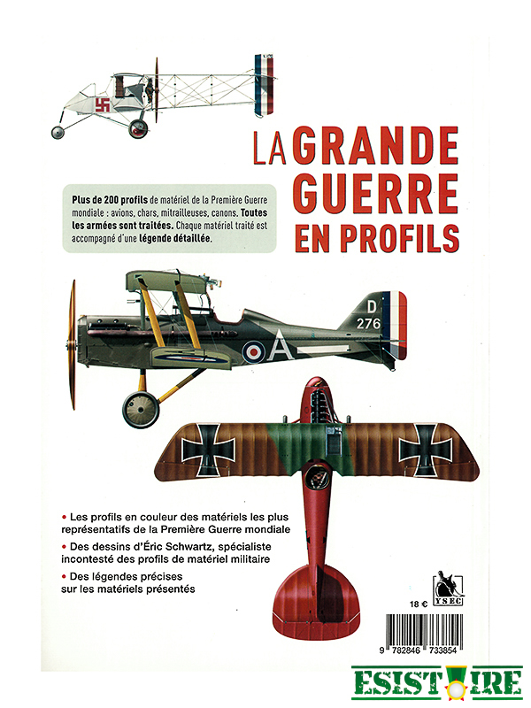 Plus de 200 profils de matériel de la Première Guerre mondiale : avions, chars, mitrailleuses, canons. Toutes les armées sont traitées. Chaque matériel traité est accompagné d’une légende détaillée.