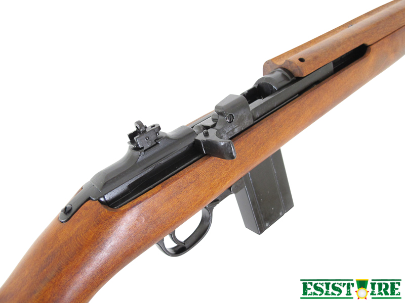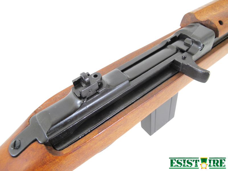 Hausse à équerre, pas de porte-baionnette, sureté par pression.