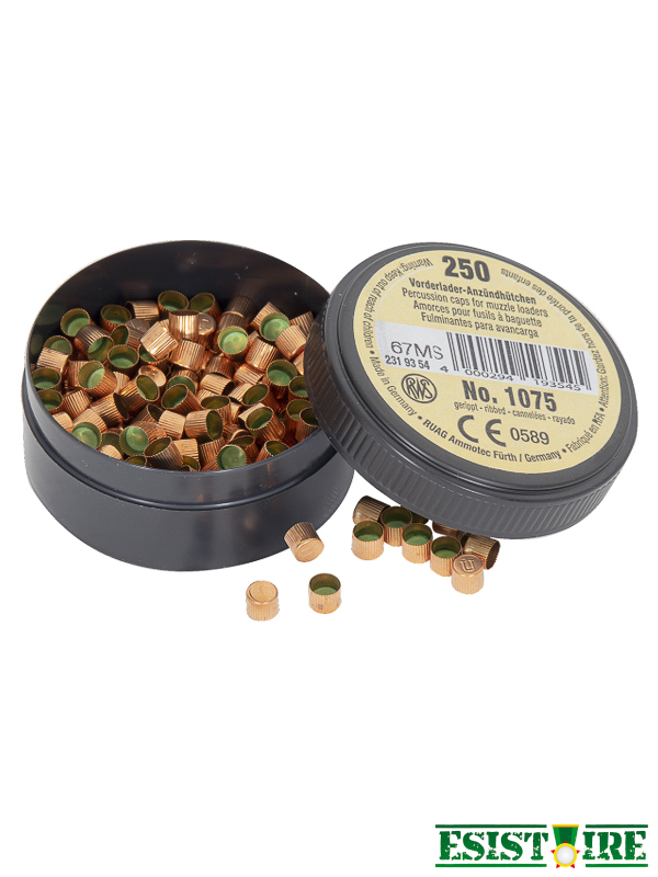 Amorces cannelées RWS poudre noire 1075 pour revolver, pistolet ou arme longue(250 unités)
